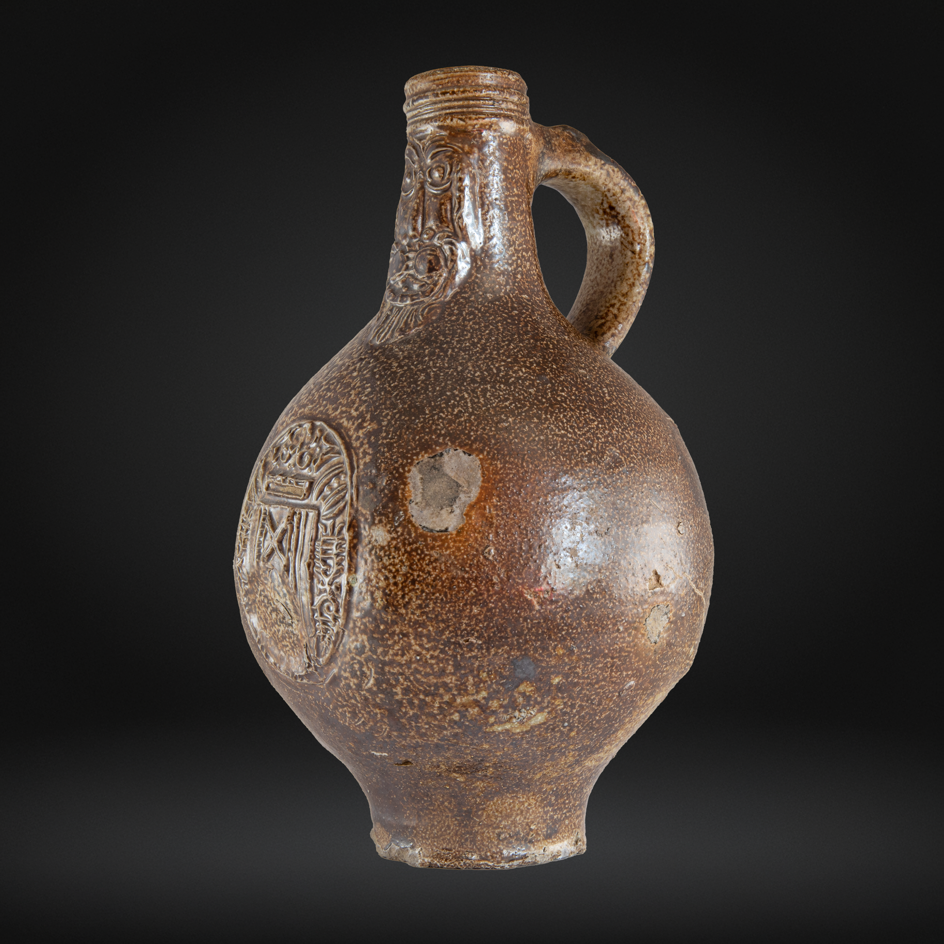17th Century Bellarmine Bottle, Salt Glazed Witch Bottle - Frechen